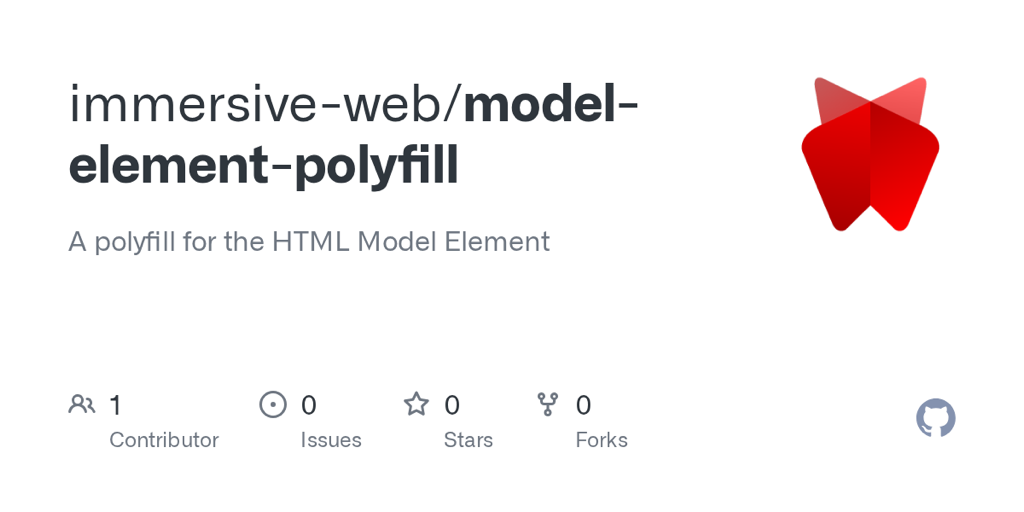 Hi Everyone, As discussed on Tuesday’s teleconference I have created a repo for a polyfill for the model-element. Kind regards, Ada Rose Cannon https://github.com/immersive-web/model-element-polyfill immersive-web/model-element-polyfill: A polyfill for the HTML Model Element github.com