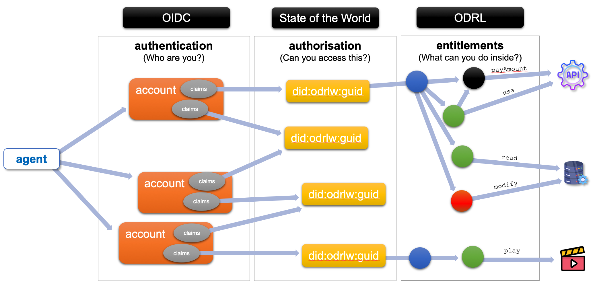 Hi, Aiming at clarifying some language for consistency, OIDC uses the term “authorisation” to cover the “can you access this” and to a limited extent “what can you do inside”. This is in monitoring or access control for an agent, not upstream contract negotiation (not converting odrl:Offer -> odrl:Agreement). Comments/thoughts appreciated. ___________________________________ Joshua Cornejo marketdata smart authorisation management for the AI-era