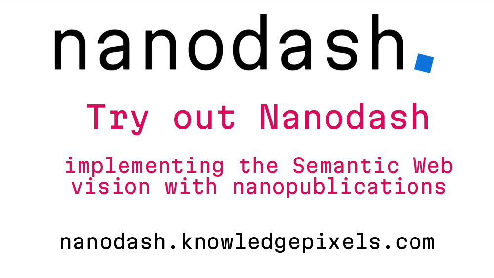 Hi all, We'd like to tell you about an ecosystem that we have set up (stable, but still early stage), based on nanopublications. It implements the Semantic Web vision, with decentralization, openness, global scope, and fully based on RDF/SPARQL/etc., but also with reliable publishing, querying, provenance, content-based identifiers, digital signatures, and AI agents as first-class citizens. This nanopublication ecosystem can be used for any kind of open data that can be expressed in RDF. For example for personal profiles, such as my own: https://nanodash.knowledgepixels.com/user?id=https://orcid.org/0000-0002-1267-0234 We are in the process of writing this all up, but you can already try it out with our Nanodash client, following these simple steps: 1. Go to https://nanodash.knowledgepixels.com and login with ORCID (top right) 2. Publish your intro nanopublication as instructed on your profile details page, so your name and signature key are known to the nanopublication world 3. Visit an existing profile and choose "add to my own profile" in the dropdown menu for a view you'd like on yours too 4. Depending on the view you have added, you can use the "add..." button to add entries. (AI agent support to import existing stuff is upcoming.) Or check out this animated GIF showing these steps: https://raw.githubusercontent.com/knowledgepixels/files/refs/heads/main/try-nanodash.gif Importantly, Nanodash doesn't store any data; it gets it all from the decentralized network, and Nanodash is itself decentralized and available as several instances! You can see an overview of the current network here: https://monitor.knowledgepixels.com/ We hope you find this interesting, and would love to hear your feedback. Best regards, Tobias
